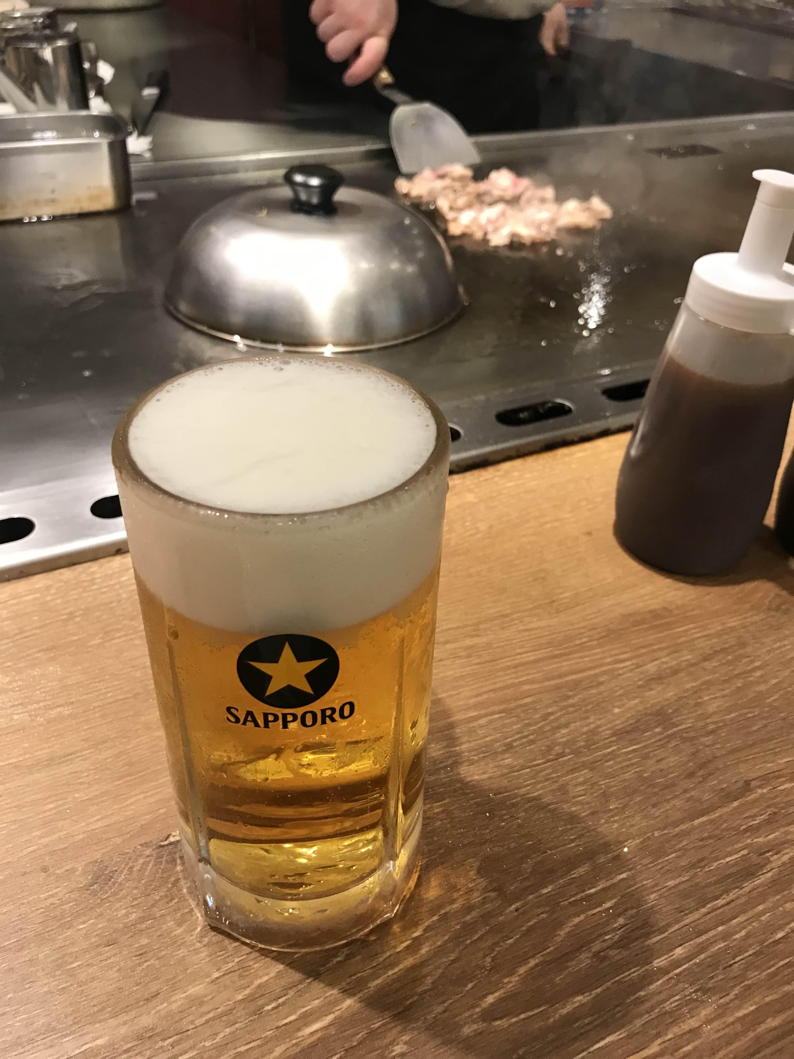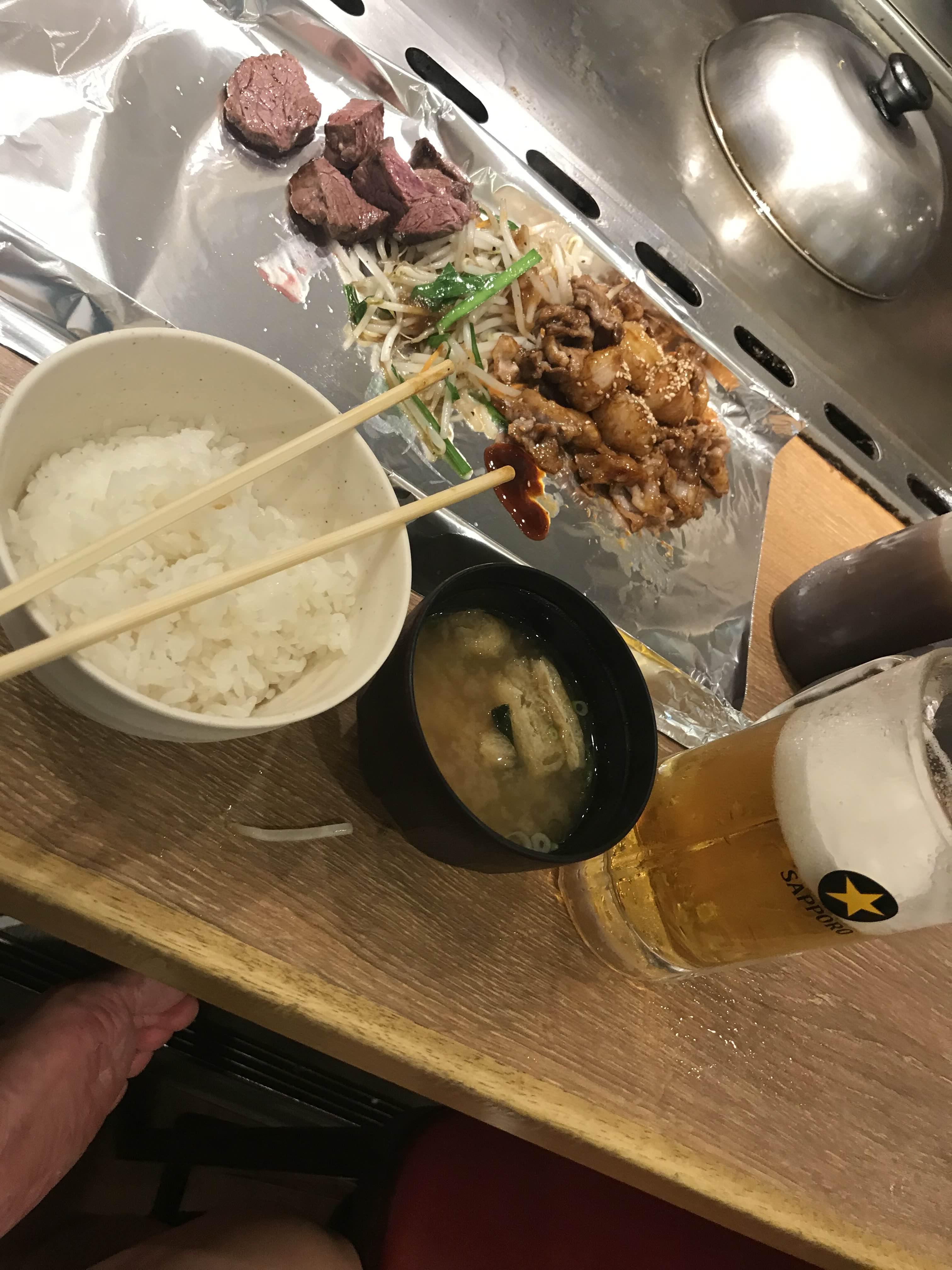 (1150) 텐진호루몬 고쿠라역점으로 이동: 초밥을 몇점 먹지 않았던 이유는 바로 2차를 가기 위해서였다. 후쿠오카 맛집투어의 필수 코스 중 하나인 텐진호루몬은 고쿠라역 Amu Plaza(역 위에 있는 백화점) 식당가에도 점포가 있는데.. 같은 메뉴를 파는데도 불구하고 후쿠오카에 있는 점포들 처럼 대기가 있지 않아서 만족스러웠다. 가자마자 믹스(스테이크, 곱창) 정식과 생맥주를 시켰다.