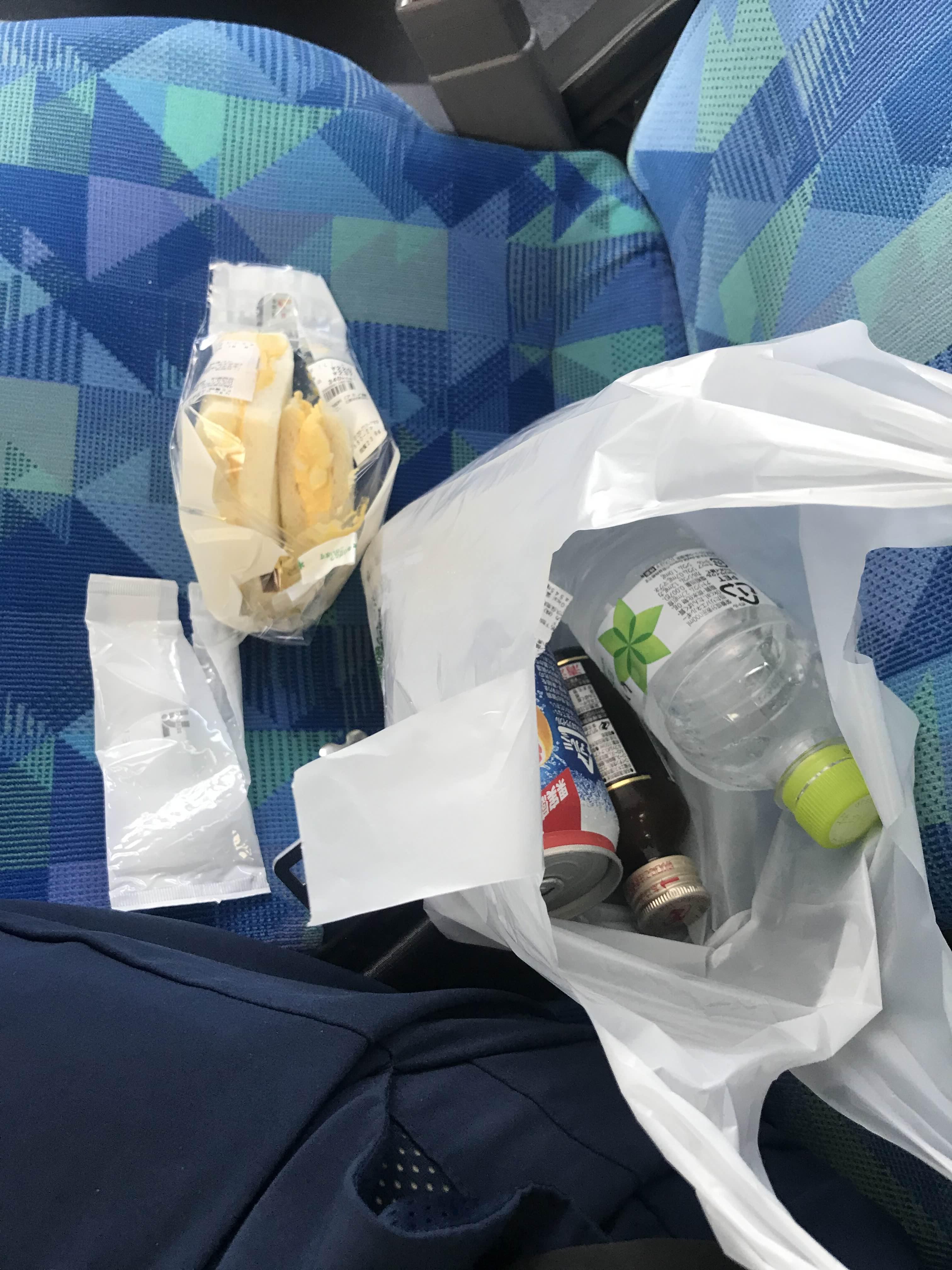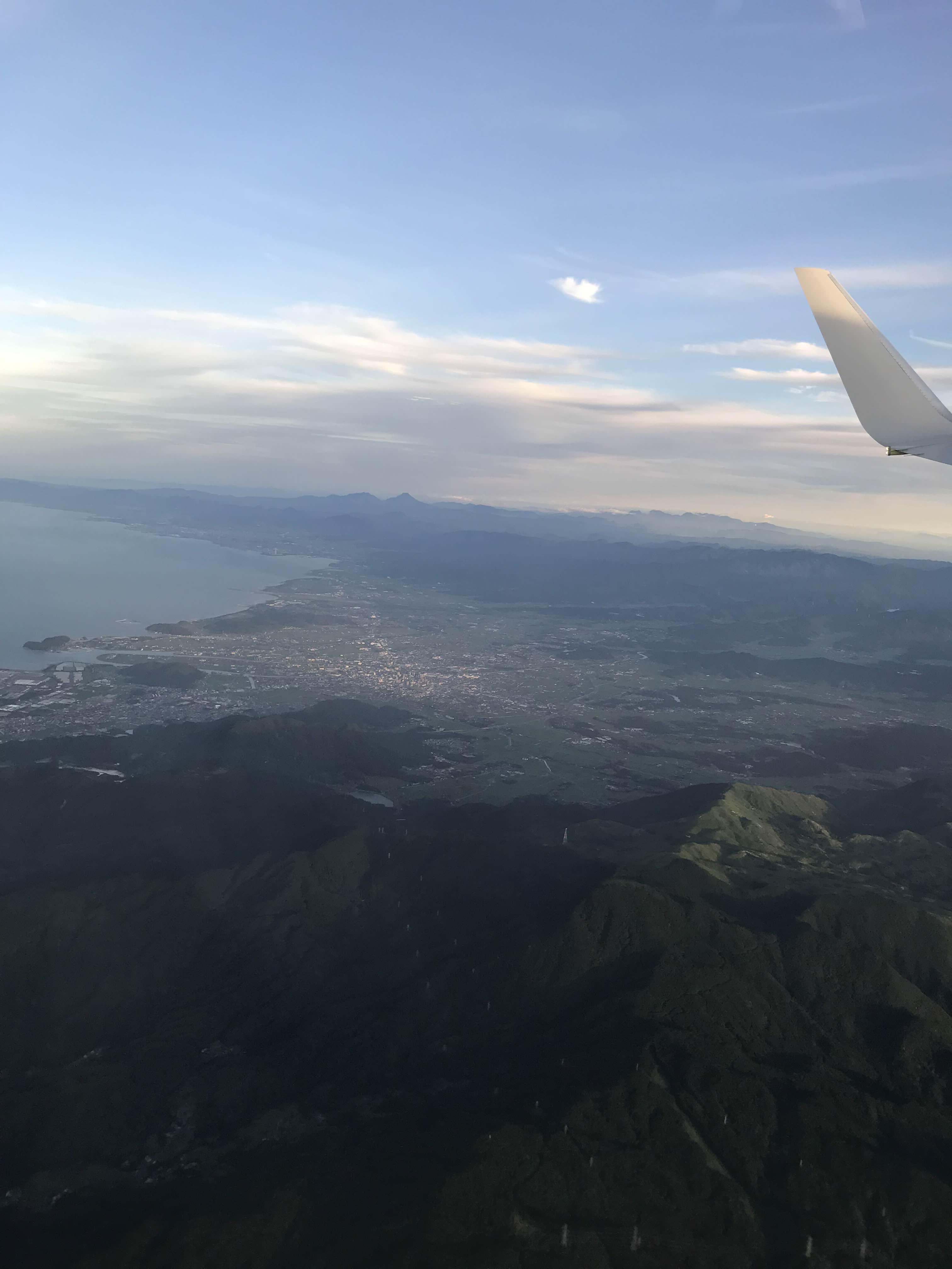(1830) 비행기 탑승&이륙: 비행기 문이 닫히고 안전수칙을 들은 후 거의 바로 이륙한다. 이륙 후 15분이면 이미 대마도를 지나갈 정도로 가까운 거리다.