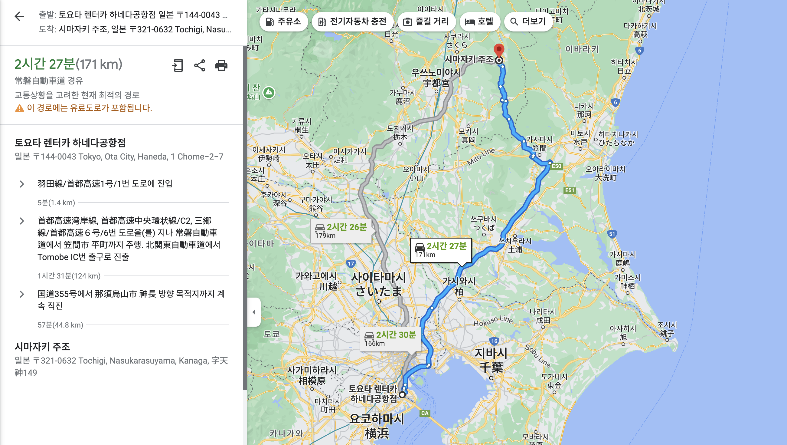 가격은 하루 8천엔정도였는데... 나중에 통행료까지 집계하니 총 2만엔 정도 나왔다.... 역시 일본 통행료.. 해당 지역이 고속도로패스랑 관련이 없는 지역이라 더 나온 것도 있고..