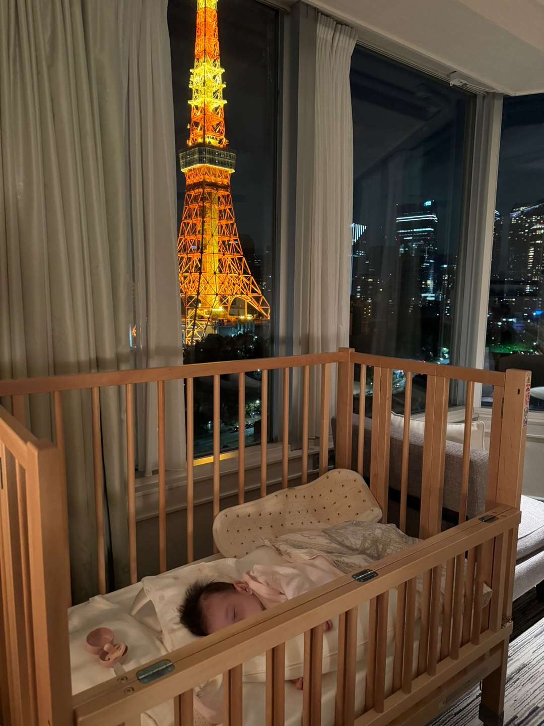 1. 아기가 비행기에서 구름을 바라보고, 호텔에서는 도쿄타워의 야경을 바라보면서 지었던 호기심어린 표정